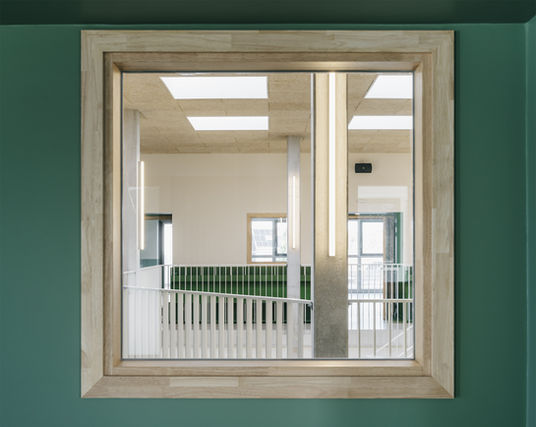 De ontwerpuitdaging lag in het combineren van compactheid met licht en comfort. Door compact te bouwen sparen we ruimte en energie. Slim geplaatste binnen en buitenramen en zorgen samen met genereuze dakkoepels voor een lichtrijk en duurzaam gebouw. Achteraan liggen de leeromgevingen rond een centraal forum dat dienst doet als project- en gemeenschapsruimte. Open leslandschappen rondom dit forum stimuleren samenwerking, terwijl de homebases en stille werkruimtes langs de gevel rust, herkenbaarheid en structuur bieden. De combinatie van deze typeruimtes geeft de leerkrachten de kans om innovatief onderwijs op maat aan te bieden, met een variëteit aan onderwijsvormen.